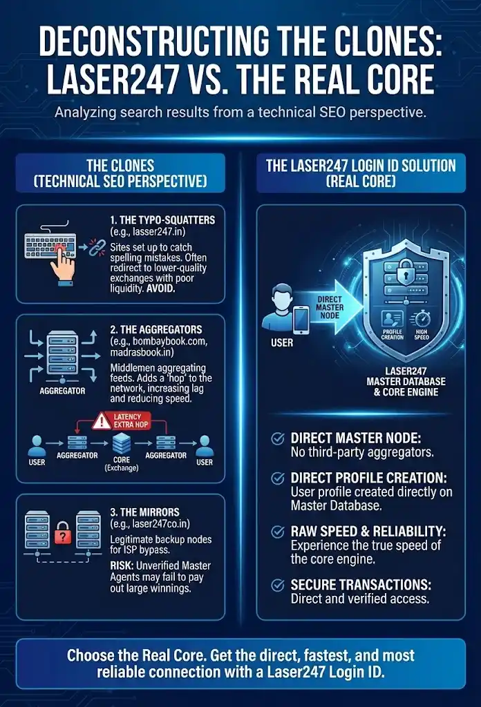 | Feature | Laser247LoginID (Official) | bombaybook / madrasbook | lasser247.in (Clones) |