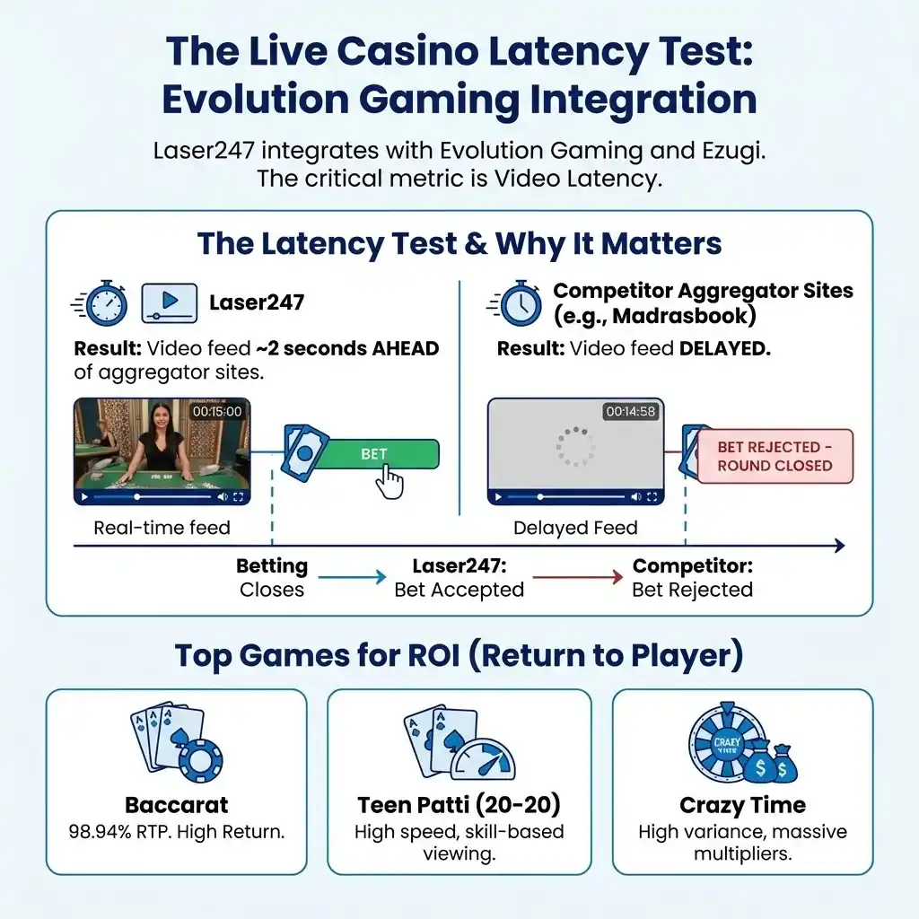 - Why it Matters: In games like Lightning Roulette, betting closes seconds before the ball drops. On a slow site, you might click “Bet” and get a “Bet Rejected – Round Closed” error. On Laser247, your bet goes through.